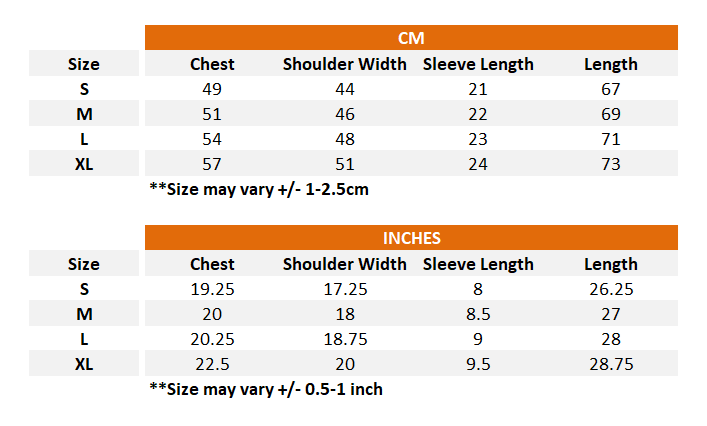 3. Please allow 1–2.5 cm error due to manual measurement.
